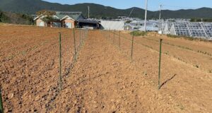 今日は露地のエンドウのネット張りを行いました!